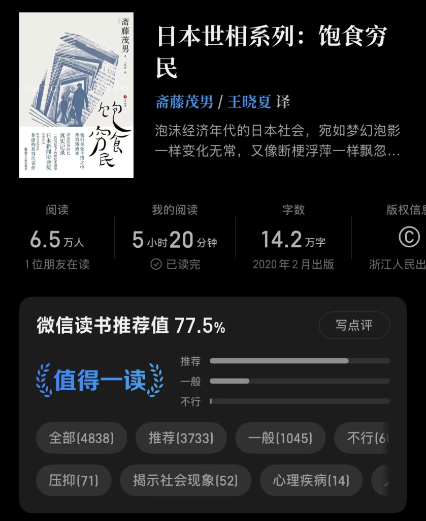 这本书是微信读书的意外馈赠,主旨在于剖析日本泡沫经济时期那些违背常理的社会症候。